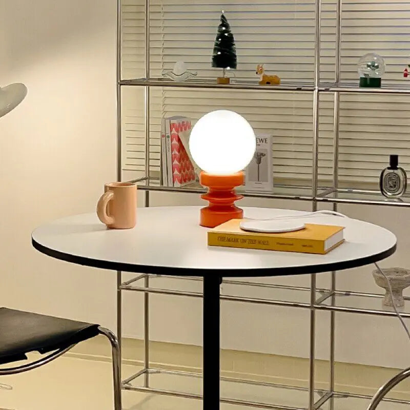 Crafted with a solid wood base and topped with a soft frosted glass globe, this lamp brings together earthy elegance and diffused lighting that feels effortlessly calming.