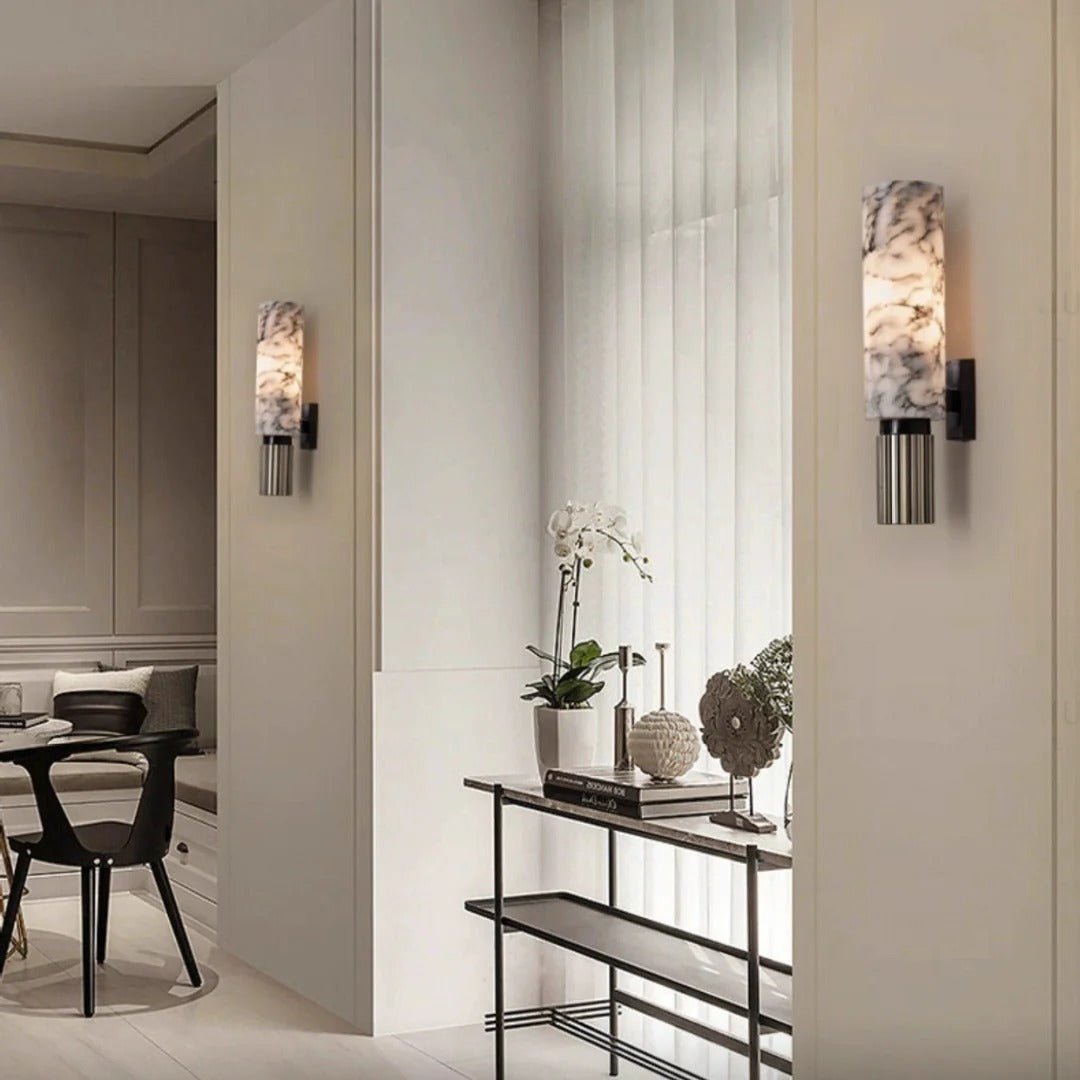 The Vero Essence Wall Lamp celebrates the elegance of natural marble. Handcrafted to perfection, each lamp’s unique veining and texture make it a one-of-a-kind piece that brings warmth and sophistication to your home. Its soft glow creates a calming atmosphere, ideal for any space.
